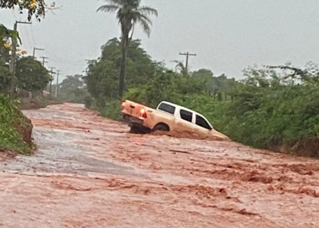 Imagens publicadas pelo Blog do Roberto Gonçalves, parceiro do nosso blog, mostram transtornos provocados pela chuva na região da Serra da Torre. No local, a força da água arrastou uma caminhonete, com iminente risco para a integridade física do motorista.