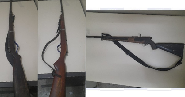 A primeira arma foi apreendida por volta das 12h07, após os policiais serem acionados pela central de rádio para verificar uma denúncia de posse ilegal. O acusado foi localizado e ao ser questionado entregou a espingarda voluntariamente aos PMs, além de 750g de chumbo e 102g de pólvora.