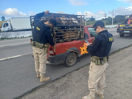 “Os animais foram retirados da caminhonete e abrigados em uma fazenda, onde receberam água e alimentação”, informou a Polícia Rodoviária Federal, que autuou o condutor devido ao transporte ilegal dos animais e pelo mau estado de conservação do veículo.