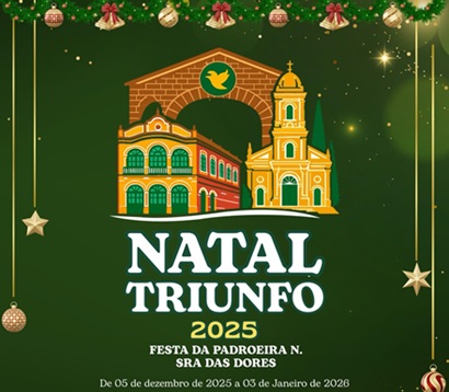 A Prefeitura de Triunfo-PE divulgou neste fim de semana a programação completa do Natal Triunfo 2025, que será realizado entre os dias 5 de dezembro e 3 de janeiro de 2026, incluindo a Festa da Padroeira Nossa Senhora das Dores.