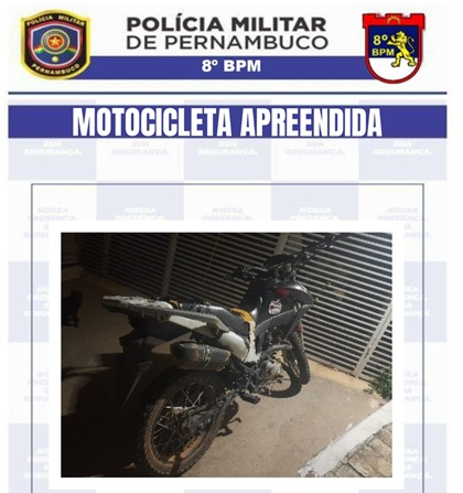 A moto foi conduzida à Delegacia de Polícia Civil de Parnamirim-PE, mas nenhum suspeito foi identificado na localidade.