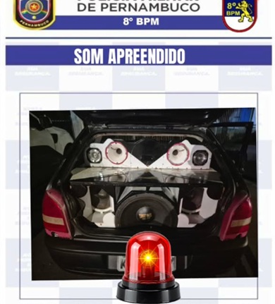 Policiais militares do 8° BPM apreenderam um som automotivo por perturbação do sossego e desobediência na noite desse sábado, 29, durante comemoração de torcedores do Flamengo em Salgueiro, após o time ganhar o 4° título da Copa Libertadores. A ação foi realizada na Avenida Major Antônio Rufino, que reuniu um grande número de torcedores entusiasmados com a conquista do clube.