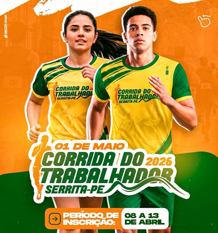 Serrita celebrará o Dia do Trabalhador, em 1° de maio, como uma atividade física e esportiva. A prefeitura da ‘Capital do Vaqueiro’ está com inscrições abertas até segunda-feira, 13, para a ‘Corrida do Trabalhador 2026’.