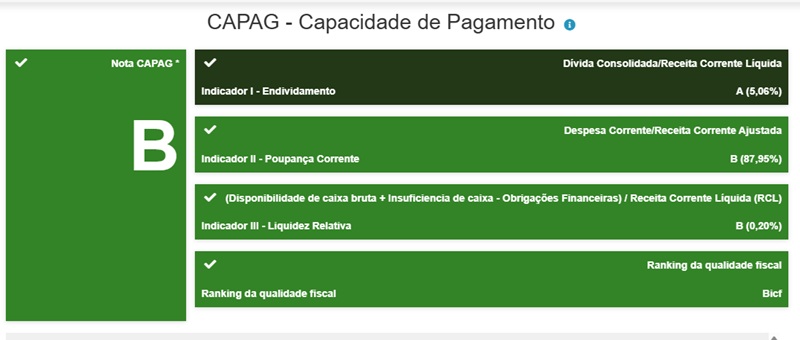 A CAPAG é uma avaliação do Tesouro Nacional que mede a saúde fiscal de estados municípios. Bons indicadores gabaritam os gestores a adquirir empréstimos junto às instituições financeiras com garantia da União.
