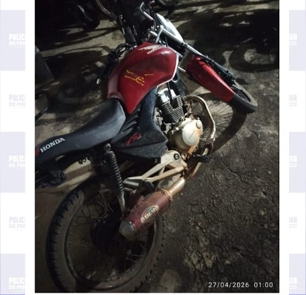 Na madrugada desta segunda-feira, 27, durante patrulhamento ostensivo pelo bairro São Francisco, em Parnamirim-PE, policiais militares do 8° BPM apreenderam uma moto que estava causando perturbação de sossego com cano de escapamento do tipo Torbal, fazendo muito barulho.
