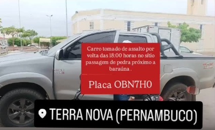 Uma caminhonete Toyota Hilux foi tomada de assalto no início da noite desta segunda-feira, 7, em uma estrada de terra às margens da PE-499, no município de Terra Nova-PE.
