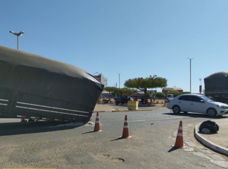 Carreta desengata e complica trânsito em Santa Maria da Boa Vista