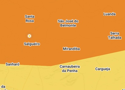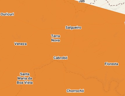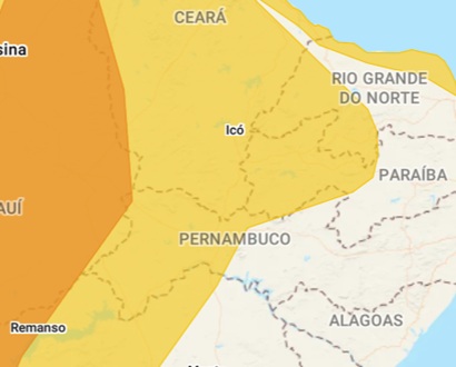 Já o alerta laranja, que representa risco mais elevado e possibilidade de danos, atinge regiões das seguintes localidades:
