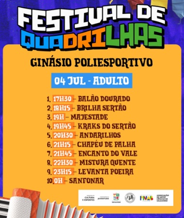 A produtora já divulgou dois artistas que vão se apresentar no palco do evento na quinta-feira, 7, e na sexta-feira, 8. Para a primeira noite está confirmada apresentação da cantora Gabi Cysneiros e no encerramento o público curte show de Jameckson.