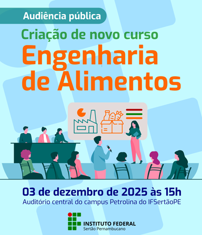 No dia 3 de dezembro, a partir das 15h, o Campus Petrolina do IFSertãoPE realiza uma audiência pública com objetivo de discutir a criação de um novo curso de Engenharia de Alimentos.