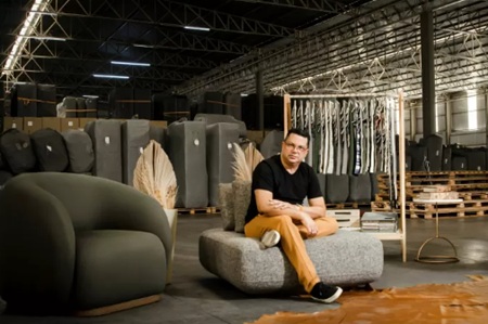 O início da empresa, em 2013, foi com a produção de sofás em um pequeno estúdio, em Birigui, no interior de São Paulo. Em 2024, ele faturou R$ 75 milhões com a Mundo Móveis e hoje é dono de três marcas: Cialar, Bux e Asano.