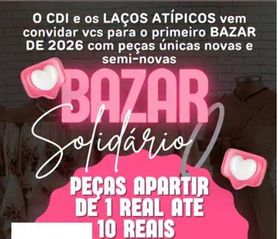 O Centro de Desenvolvimento Integral Maria do Carmo (CDI) e o grupo Laços Amigos, que prestam assistência a famílias com crianças atípicas de Salgueiro, realizam o 1° Bazar Solidário de 2026 nesta sexta-feira, 23.