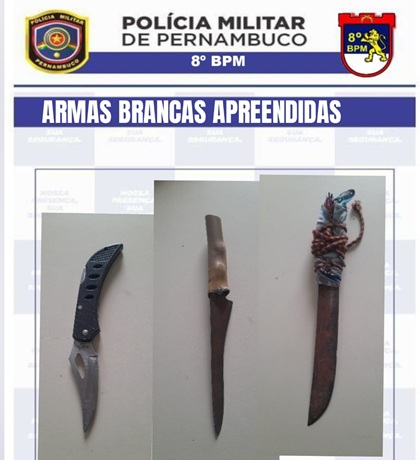 Na noite de sábado, 4, policiais militares do 8° BPM abordaram um homem na Rua Malvin Jones, no bairro Divino Espírito Santo, em Salgueiro, e descobriram que ele estava portando duas facas.