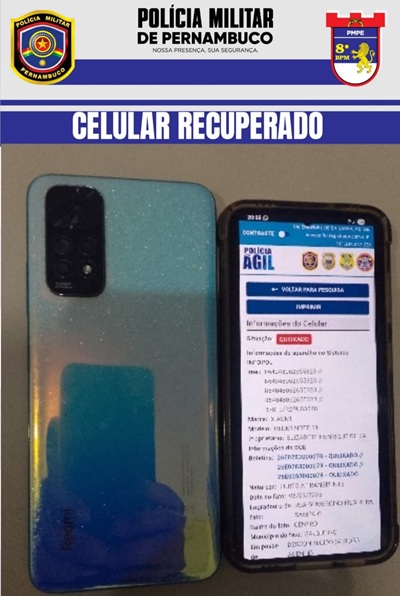 Um celular da marca Xiaomi, com restrição de furto ou roubo, foi apreendido por policiais militares do 8° BPM na noite desta segunda-feira, 23, por volta das 20h40, no Loteamento Santo Antônio, em Salgueiro.