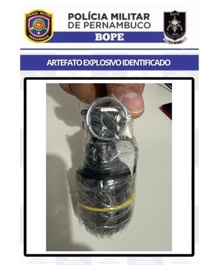 “Após análise realizada pelos técnicos, foi observado que o pino de segurança estava no local e foi feito procedimento para garantir maior segurança no manuseio da granada, que passará por análise do Esquadrão Antibombas do Batalhão, antes de ser destruída”, informou a Polícia Militar de Pernambuco.
