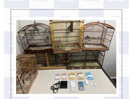 Após informações colhidas pela equipe Malhas da Lei, com apoio técnico do setor de inteligência do 8° BPM, os policiais foram ao imóvel e apreenderam oito pássaros conhecidos popularmente como bico-de-prata, além de três azulões, um caboclo lindo e um golinha.