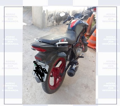 Uma moto em situação irregular foi apreendida por policiais militares do 8° BPM no começo da tarde desta sexta-feira, 26, na Rua Tancredo Neves, no Centro de Cedro-PE.