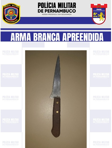 Uma mulher foi detida pela Polícia Militar do 8° BPM na noite dessa terça-feira, 28, por volta das 22h, em Salgueiro, após o efetivo policial apreender uma faca peixeira que ela estava portando.