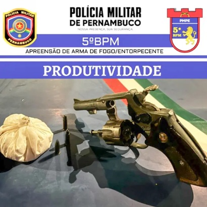As equipes do GATI do 5° BPM apreenderam nesta terça-feira, 22, no povoado Ponta da Serra, um revólver calibre 22 com três munições intactas do mesmo calibre e 76 gramas de cocaína.
