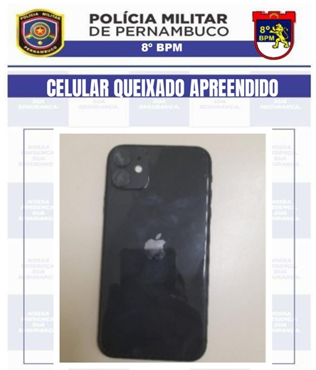 Um celular da marca iPhone foi apreendido por policiais militares do 8° BPM na tarde desta sexta-feira, 27, por volta das 14h31, no bairro Nossa Senhora Aparecida, nas imediações do Centro de Salgueiro.