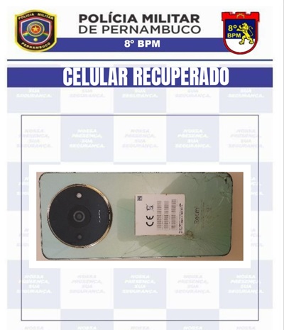 Um aparelho celular com queixa de roubo ou furto foi apreendido por policiais militares do 8° BPM na madrugada desta terça-feira, 24, na Rua José Gonçalves da Silva, no bairro Padre José e Maria, em Verdejante.