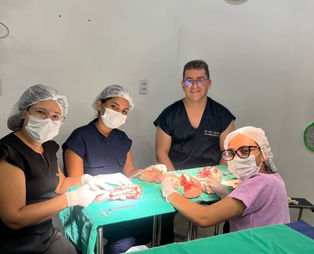 A capacitação foi realizada com apoio do médico obstetra Yuri Carvalho, tendo como ponto central o desenvolvimento técnico das residentes no manejo de lacerações perineais, através de treinos práticos com diferentes técnicas de sutura.