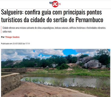 Na segunda-feira, 21, por exemplo, o JC postou na seção “Turismo de Valor” uma matéria informando os principais pontos turísticos de Salgueiro para quem vem visitar a cidade esta semana, durante o festival.